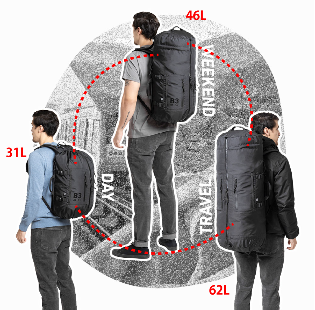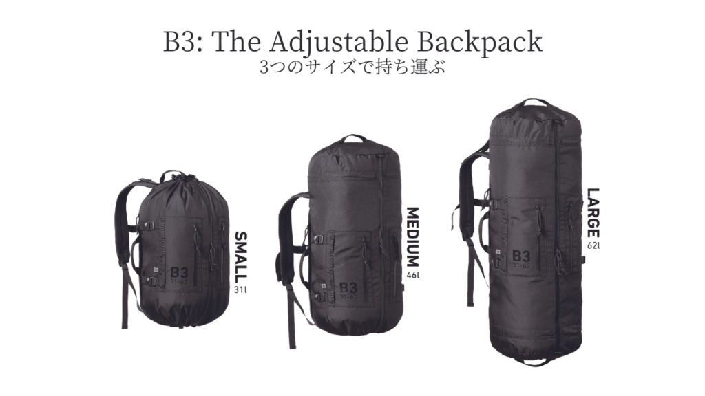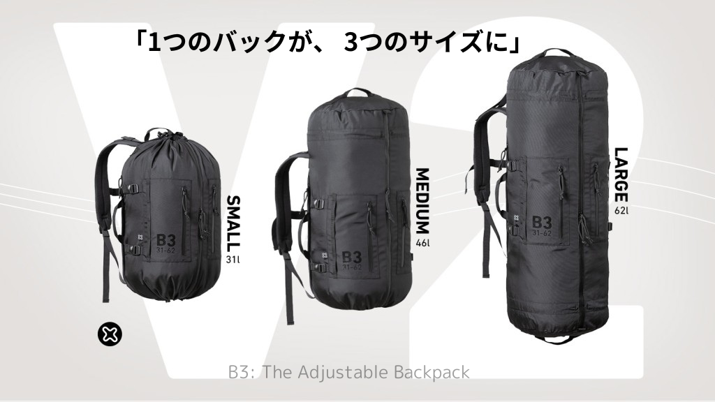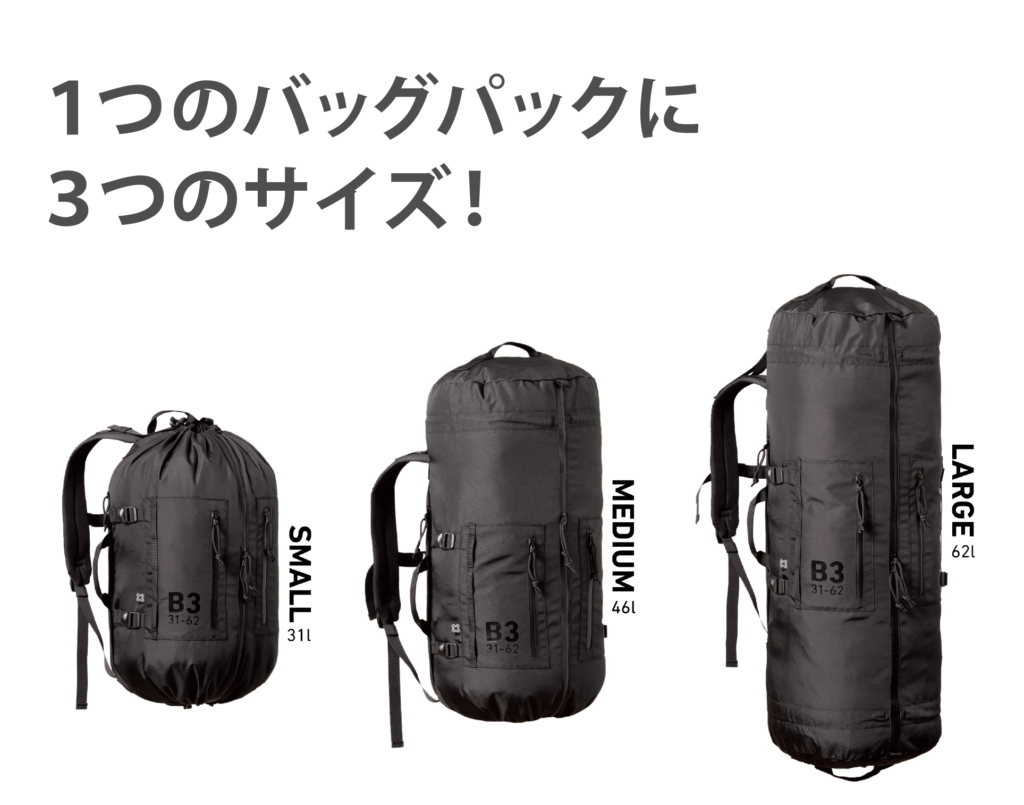 3サイズ拡張可能。あらゆるシーンで最適なバッグにすばやく変身。もうこれひとつだけで十分!