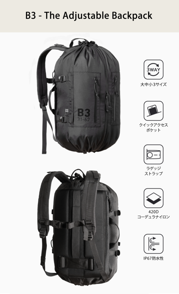 海外クラファン実績あり【PIORAMA B3】究極のアジャスタブルバックパックがついに日本に!